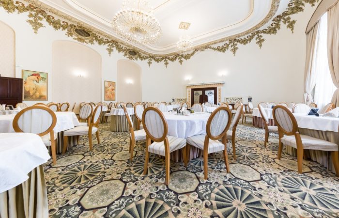 XSala Regina Elisabeta este caracterizata prin rafinamentul si eleganta saloanelor specifice perioadei interbelice. Restaurantul, cu o capacitate de 120 de persoane in sistem sitting si o suprafata de 207 mp, isi propune sa evoce pe cat posibil amprenta Altetei Sale Regina Elisabeta, dorind ca “elegant” sa fie cuvantul care ne defineste, atat din punct de vedere al serviciilor cat si prin produsele sale.
